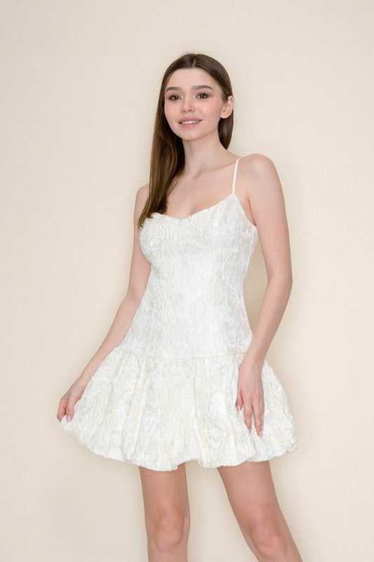 Br Creamy jacquard bubble hem sleeveless mini dress