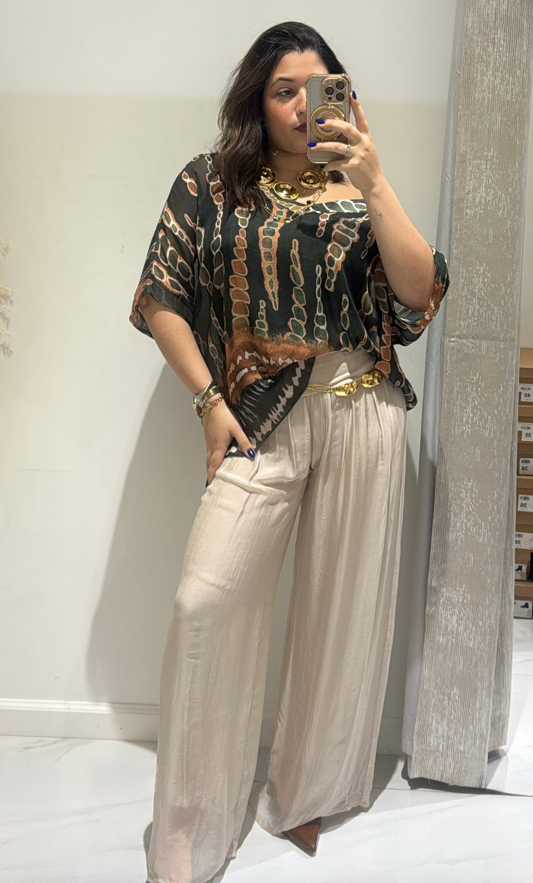 N Print chiffon top/with solid pants